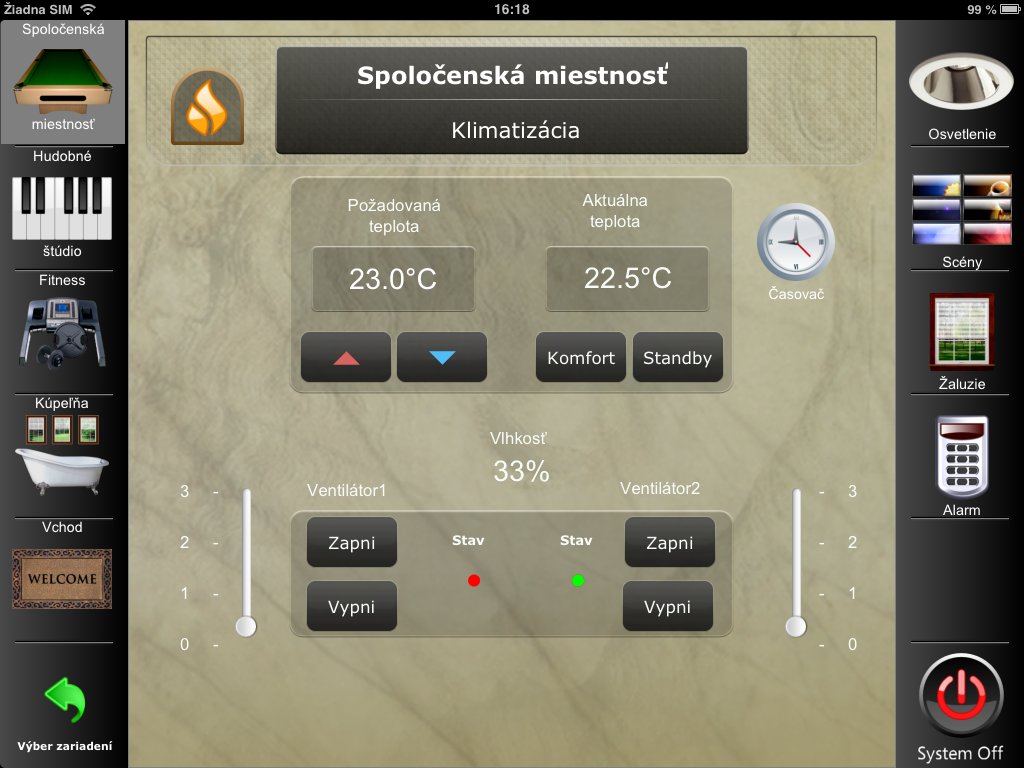Samozrejme že užívateľ má možnosť kedykoľvek do programu zasiahnuť a nastaviť teplotu manuálne. Časovými programami môžeme určiť požadovaný režim a teplotu podľa hodiny(ráno, deň, večer, noc), podľa dňa v týždni (pracovný deň, voľný deň). Diaľkovým ovládaním, napr. cez iPhone, môžeme zapnúť kúrenie pred príchodom domov, alebo na chatu. V kombinácii s ovládaním tienenia môžeme dosiahnuť v našom dome príjemnú pocitovú pohodu, zvýšenie pohodlia a výrazné úspory za energie, čo je určite nezanedbateľné pre každého.